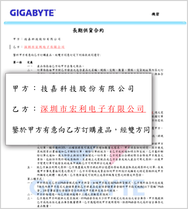 技嘉科技股份有限公司與本公司簽訂的合作合同方案